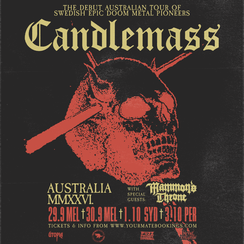 Mammon’s Throne will join Candlemass as main support on their entire run of Australian shows in September and October. If you are living or staying in Australia, be sure to check out these epic Doom Metal package!